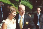 After they had bravely endured serious suffering we all danced waltz on a parking lot and opened the first bottles of champagne. Obviously delighted, bridegroom and bride posed in front of their car before we went to another place, having more champagne and beer.